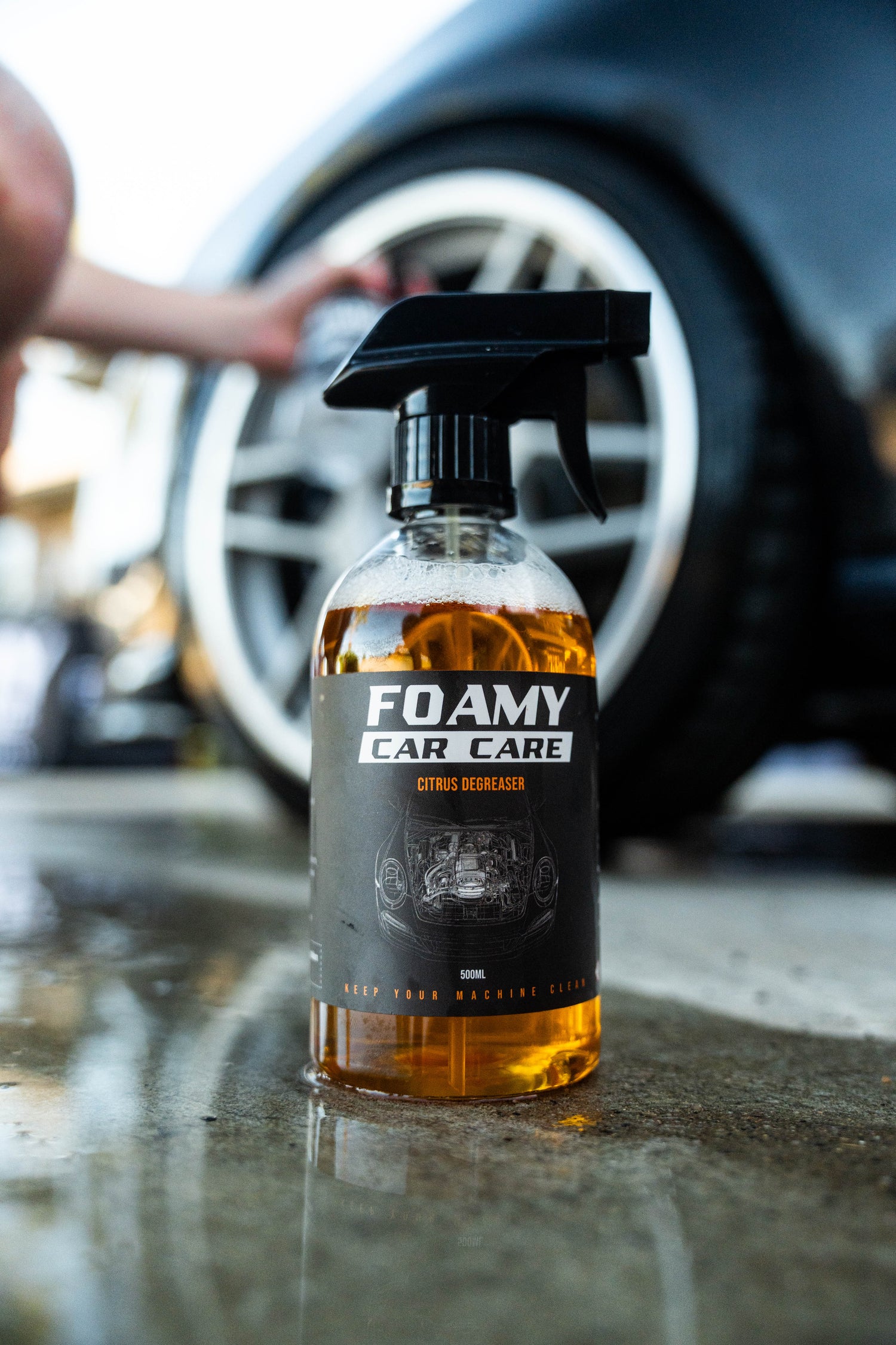 NOTE:Do not use on vehicles with a protective coating (e.g. ceramic coating) or vinyl wrap. Foamy Car Care’s Citrus Degrease is an alkaline formula (pH 13–14) and is not suitable for use on coated or wrapped surfaces, as it may strip protective layers or cause streaking.